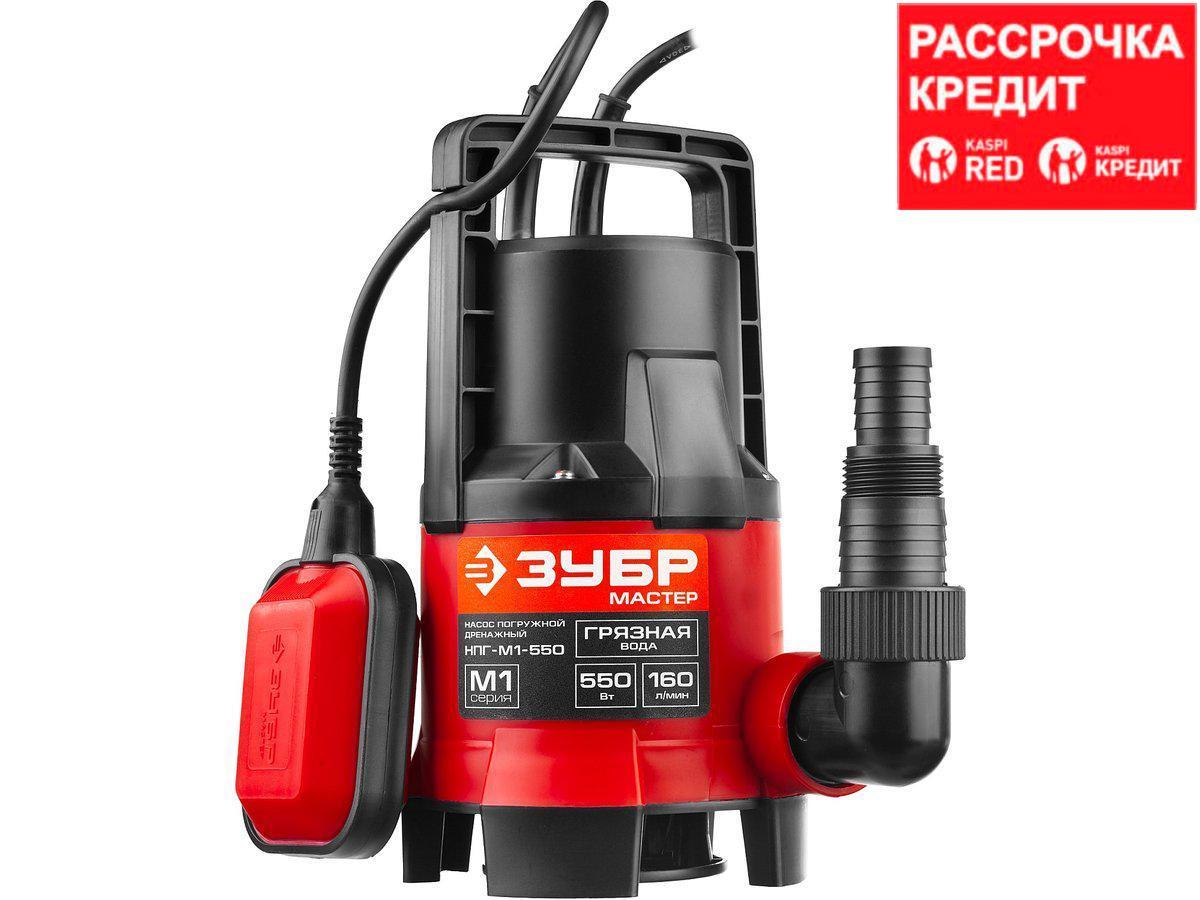 Дренажный насос погружной для грязной воды ЗУБР НПГ-М1-550, МАСТЕР, М1 (d частиц до 35 мм), 550 Вт, пропускная способность 160 л/мин, напор 6,5 м, с поплавком