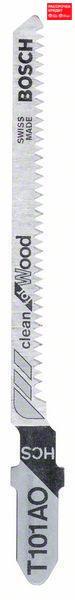 Пилочка для лобзика Bosch Clean for Wood T 101 AO изготовлена из высоко углеродной стали. Имеет остроконечные зубья с задним углом заточки и шагом 1,4 мм. Предназначено для фигурных, чистых резов мягкой древесины (1,5-15 мм), клееной фанеры, столярных плит с покрытием (1,5-15 мм).